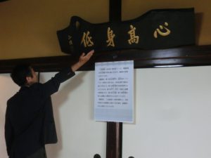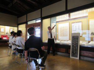 実施中の体験活動①(咸宜園入門体験) 「休道の詩」を歌い門下生に魂を打ち込みました。