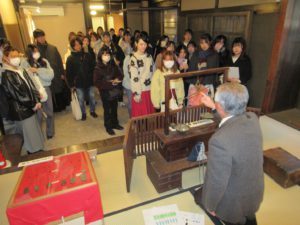 下写真 両替体験② 江戸期の両替の仕組みを真剣に聞く大学生のみなさん