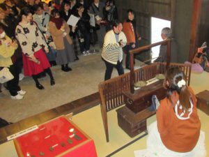 10月26日から12月7日まで文化財の有効活用月間として、咸宜園入門式、両替えなどの体験活動を実施しました。初めての試みで一カ月間の限定でしたが、77名もの方が特別に参加してくださいました。通常入館料が450円ですが、250円を上積みして700円で実施しました。初めは皆無でしたが、徐々に増え始め、2団体の参加もあり当初の予想より多い人数となりました。中でも、一番感動していただいたのが「咸宜園入門式」の体験です。令和の咸宜園に入門できたという高揚感がひしひしと伝わってきました。両替体験活動は、笑いあり驚きありと心温まるものとなりました。そして、終わりには、「有難うございました。感動しました」「とても楽しかったです」「今度は友人と一緒に又来ます」等の感想を述べて帰って行かれました。今回、文化財の活用ということで、一ヶ月余り実施しましたが反響の多さに驚かされました。今後、成果・課題を整理して何らかの形で継続できればと考えています。            以下、その時々の様子をお知らせします